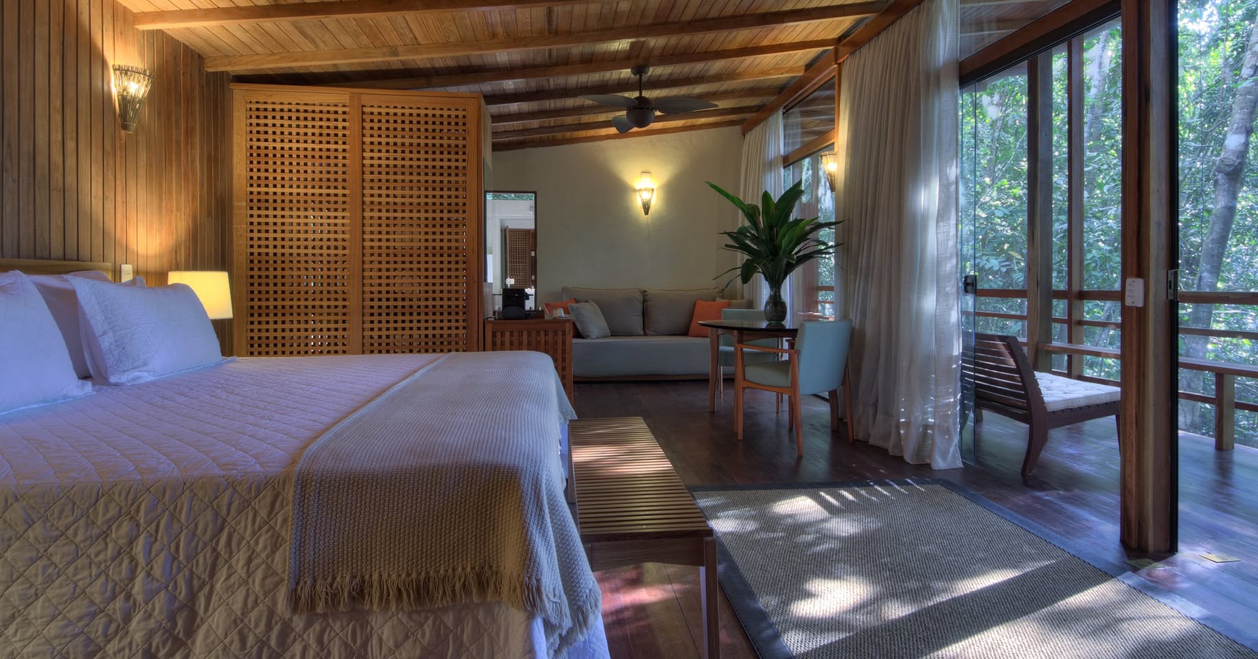 Surrounded by greenery, the 24 accommodations were inspired by the region's caboclo architecture to blend in with nature in total harmony. Close your eyes and listen to the sounds of the forest!