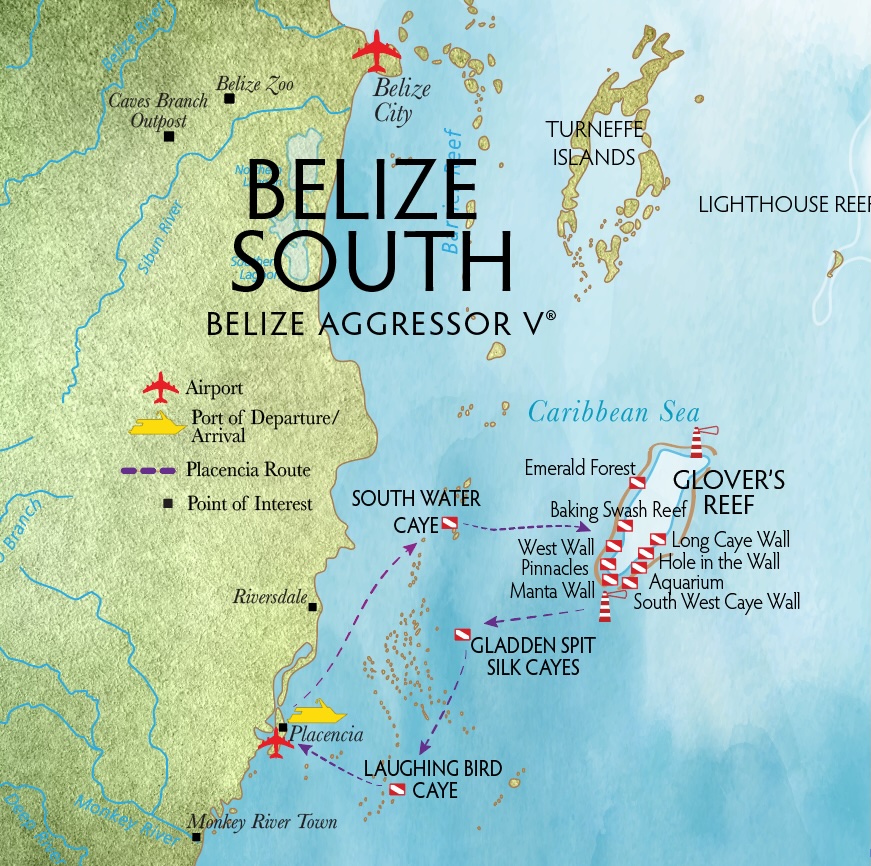 The Placencia & Glover's Reef itinerary explores southern Belize — a region that sees far fewer liveaboard divers than the more-traveled north, making it one of the most pristine and unspoiled diving experiences in the Caribbean.