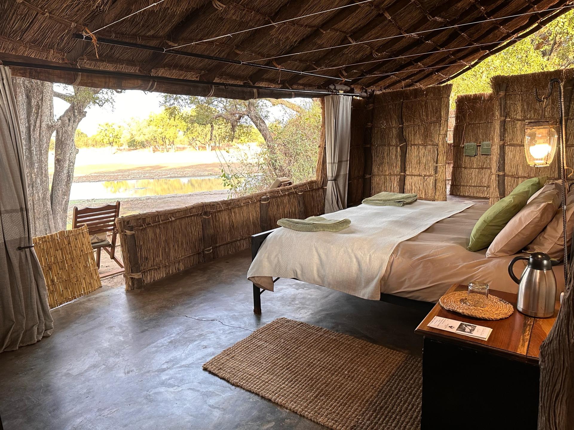 Big Lagoon Camp, who together with it's Chikoko Tree sister-camp comprise Tafika Trails, offers unparalleled walking safaris. Located in a remote roadless section of the South Luangwa National Park, a few miles upstream from parent camp, Tafika, both Big Lagoon Camp and Chikoko Tree Camp are only accessible only on foot and offer a fantastic bush experience. Being exclusive walking camps with no other camps, vehicles or roads in the area, the minutiae of the bush come to the fore; the smells, the essence of the macro world and a sense of timelessness.