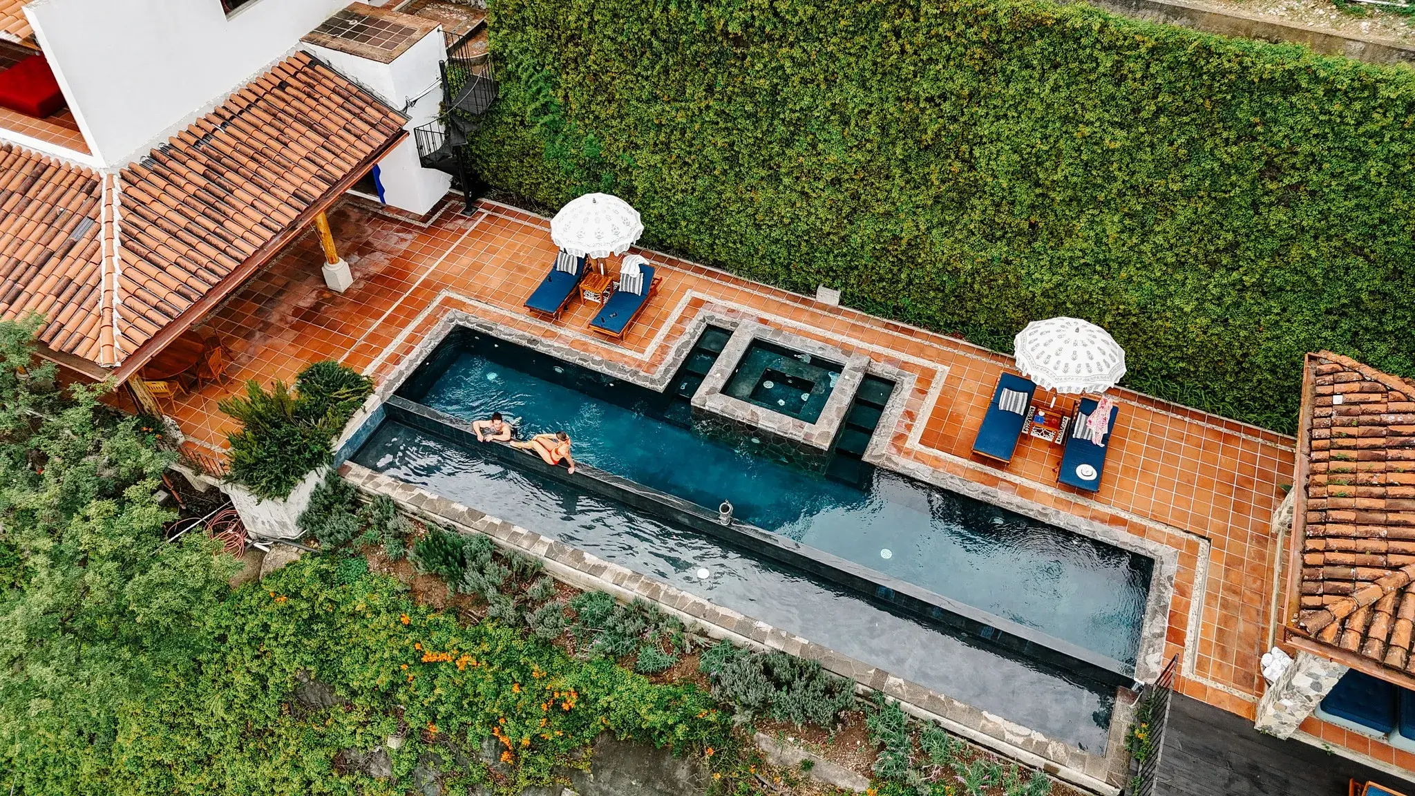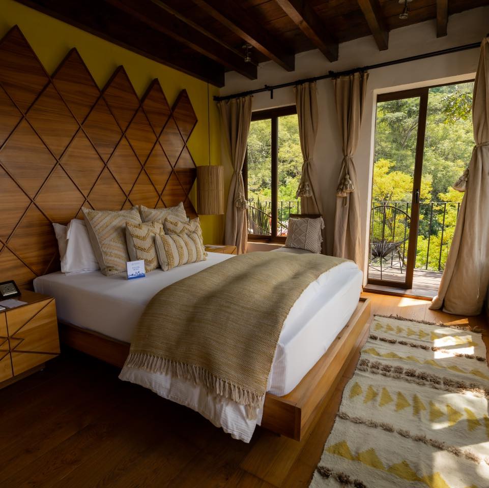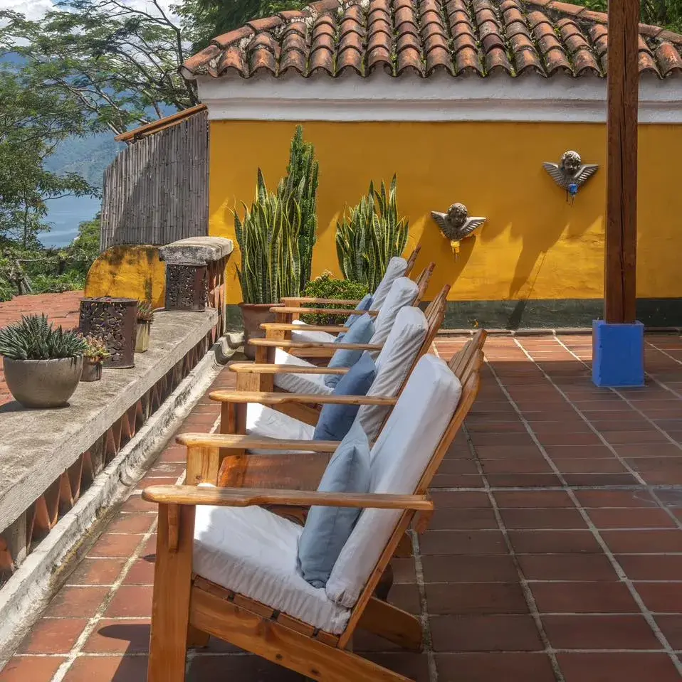 Fifteen spacious rooms are uniquely decorated with contemporary and indigenous Guatemalan artwork, that hangs on bright stucco walls. Wooden beams span overhead, with cool Italian linens draping across the beds. Private terraces are furnished with wooden lounges, creating the perfect nook to absorb the views.