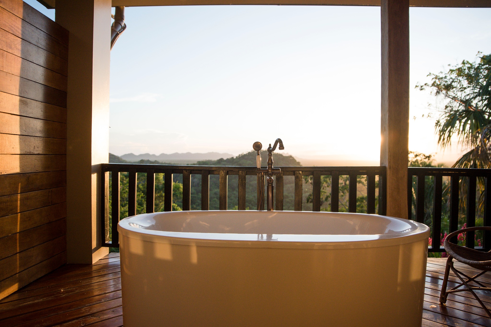 Designed for two adults, each spacious and elegantly crafted suite features a king-size bed, a cozy daybed, a stylish sitting area, and a private veranda overlooking the jungle. Indulge in ultimate relaxation with an outdoor soaking tub and a luxurious bathroom with a walk-in shower offering floor-to-ceiling rainforest views.