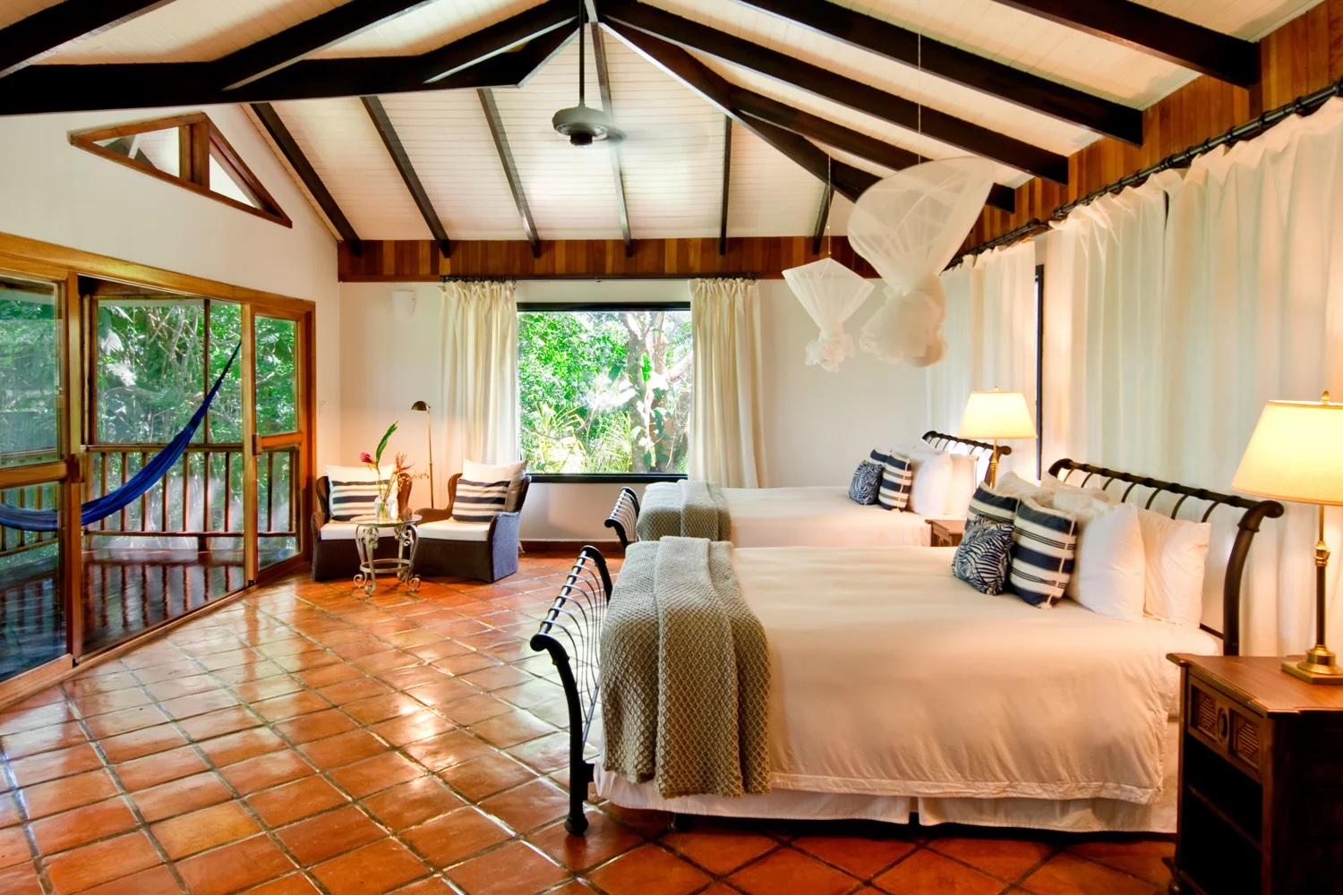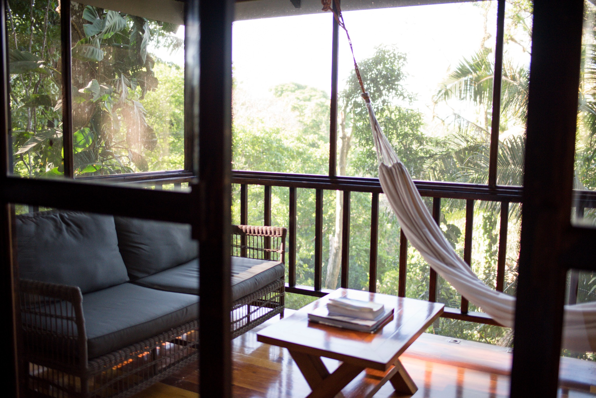 Surrounded by the lush beauty of the Belize rainforest, our Jungle Suites offer a serene retreat where nature and comfort blend seamlessly. Thoughtfully designed to enhance your connection with the jungle, each luxurious suite features a private bathroom with a walk-in shower and breathtaking floor-to-ceiling rainforest views, a cozy indoor sitting area, and a screened-in balcony with a hammock, perfect for relaxation.