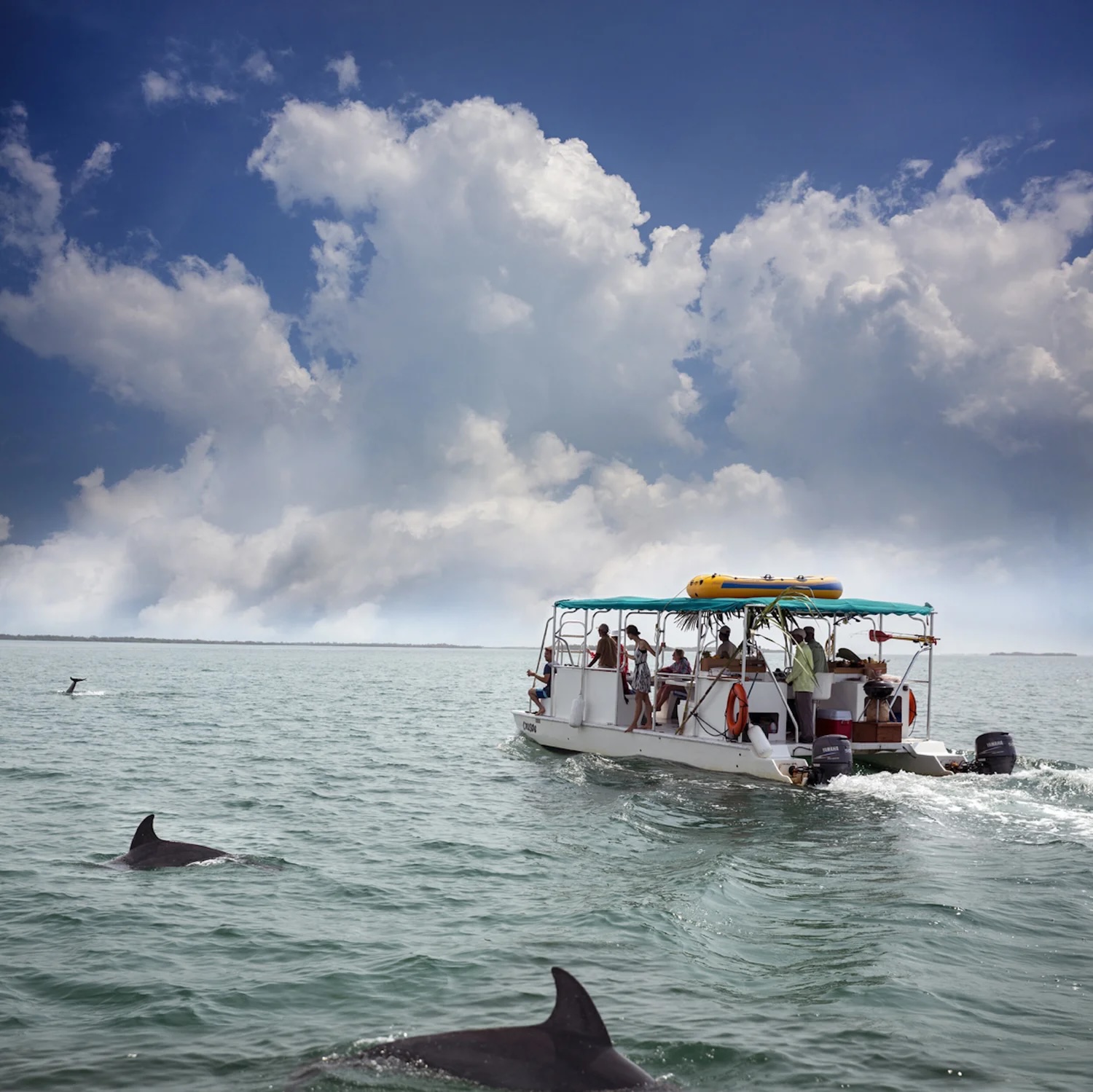 This tour is a must during your stay, seamlessly combining adventure and cuisine in one unforgettable trip. Join us for a guided day cruise to the Gulf of Honduras on our quiet, comfortable boat, accommodating up to 8 guests.