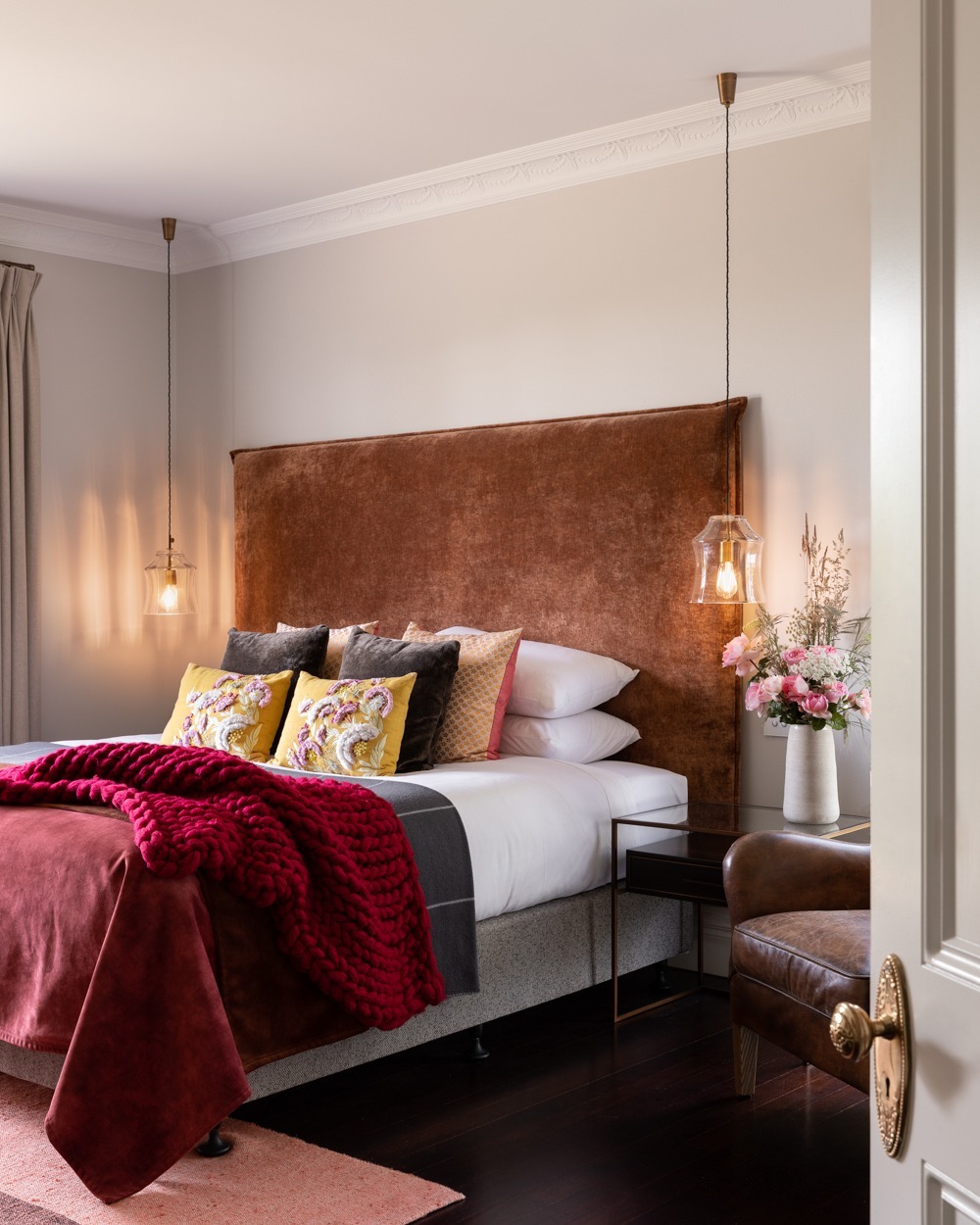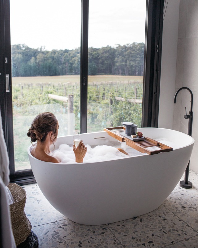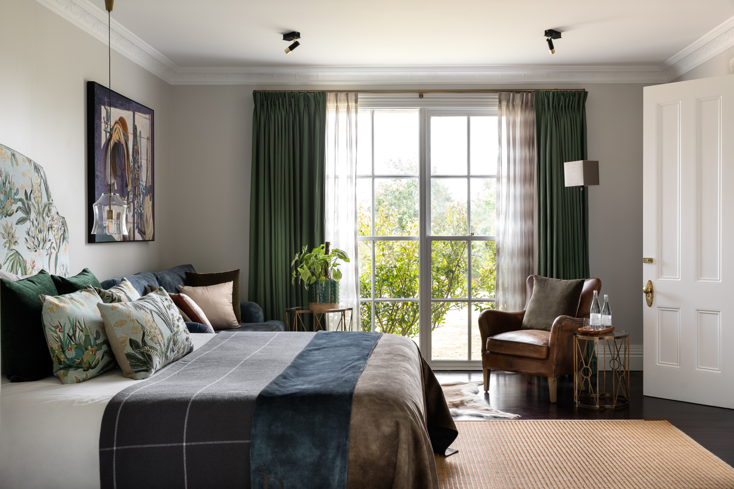 The Suites are large and luxurious, as well as individual in configuration and design. Dramatic oversized upholstered bedheads frame a super king-sized tailor-made “Daylesford” bed with heavenly topper. Crisp white linen is layered with blankets from the local mill, soft velvets and thick woolen throws for a luxurious and comfortable night’s sleep.