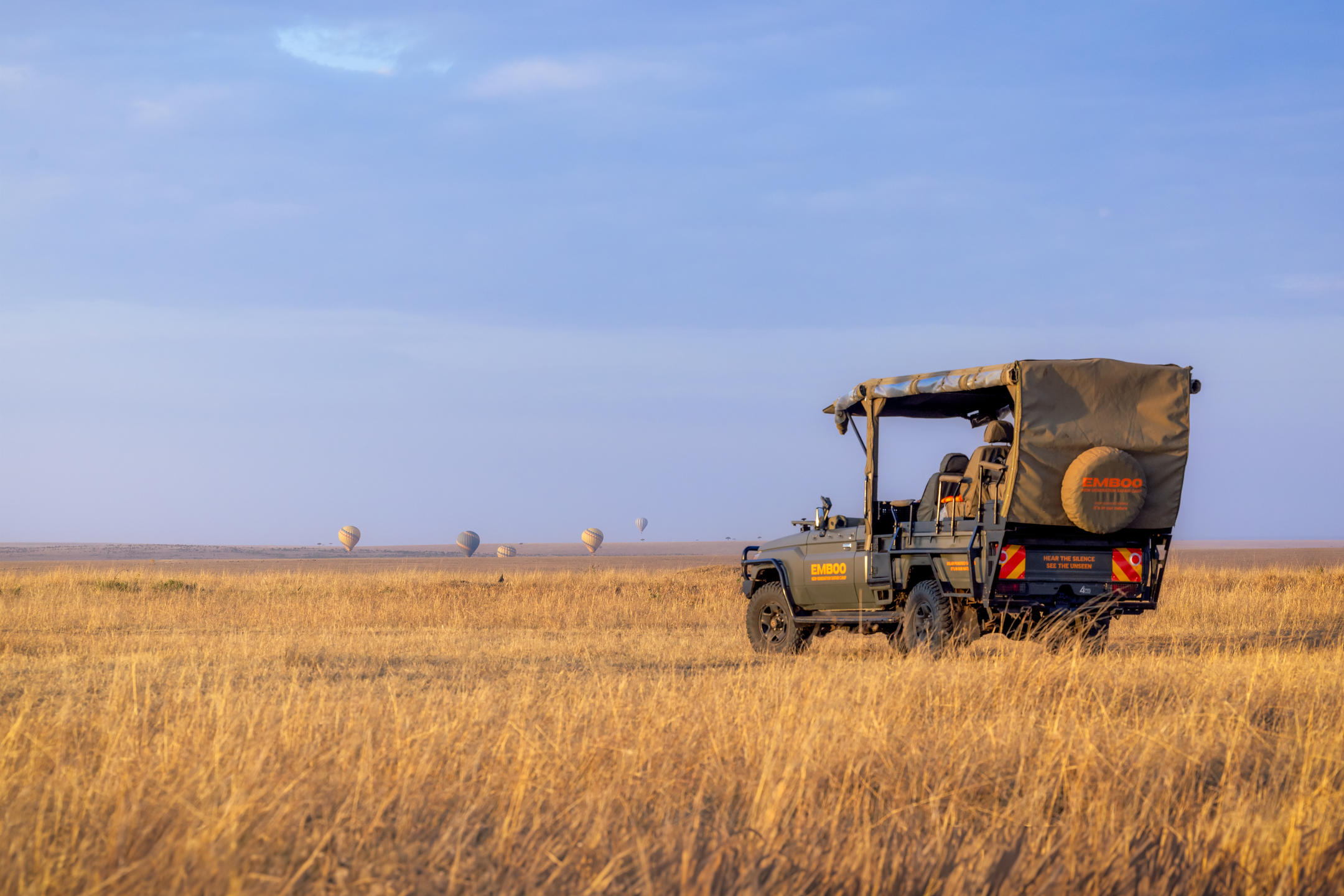 Emboo operates a fully electric vehicle fleet: Land Rovers and Land Cruisers powered entirely by the camp's solar array. Game drives are silent, allowing for closer wildlife encounters without engine noise. The vehicles handle the Mara's terrain, crossing rivers and hills while running on renewable energy. It's a practical demonstration of what's possible when sustainability is built into operations from the ground up.