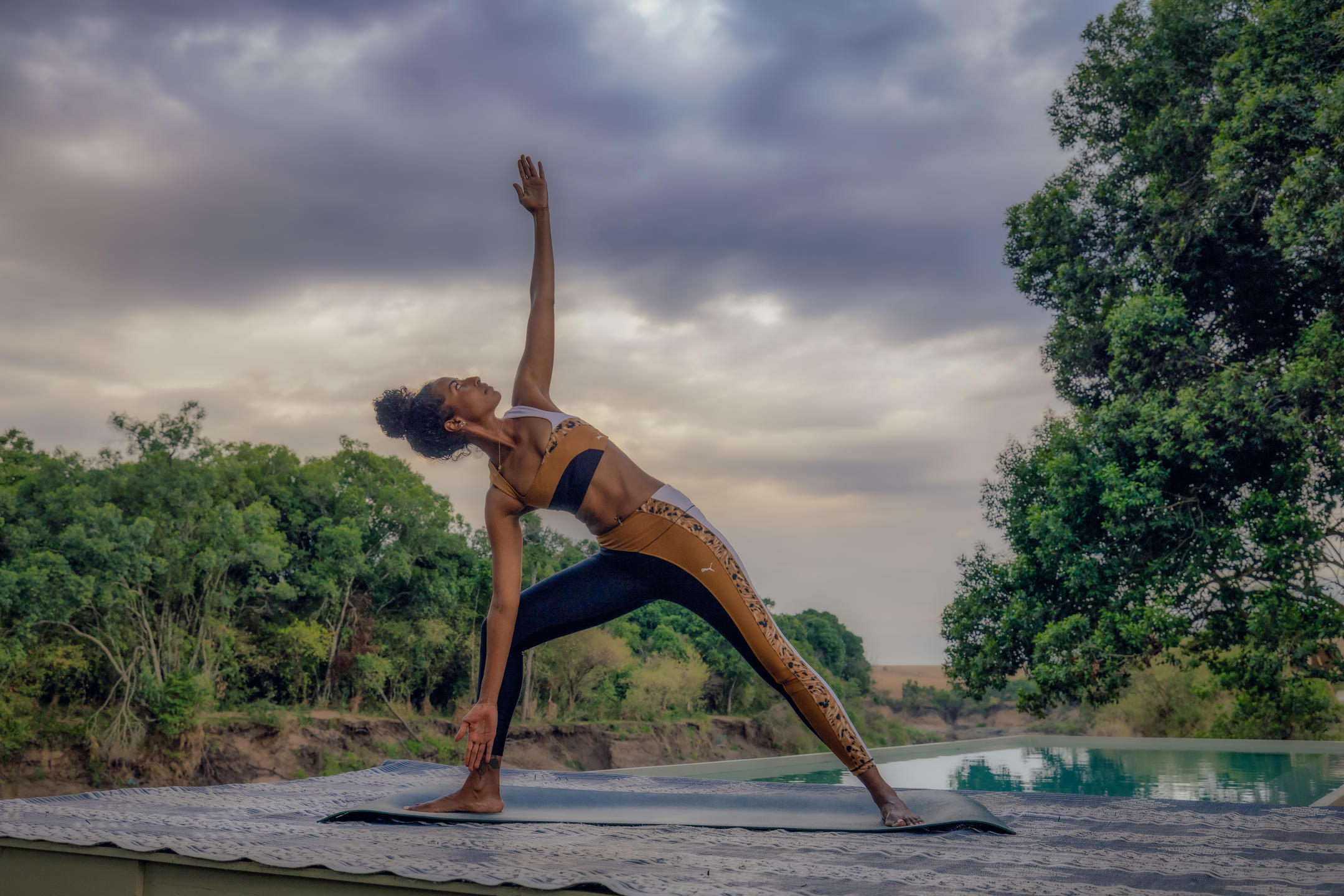 The camp includes a swimming pool with river views, a bush spa, and the Maasai Mara's first running track. These amenities provide options for guests between game drives, whether that's relaxation or activity.