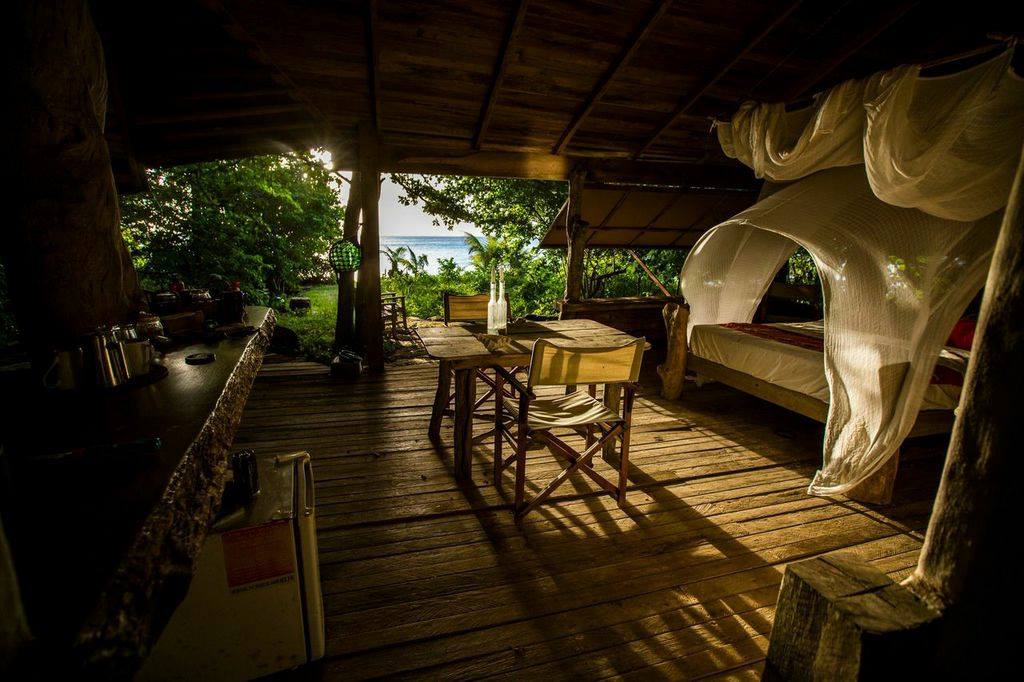 The Beach hut is an open plan, aesthetic drift wood accommodation situated right on the beach and some distance from the main complex, a boardwalk leads down to the open shower and bathroom standing amid a coconut forest. Large canvas shutters open directly onto the beach where the sun sets over an open fireplace. Barefoot luxury for those who enjoy bird song and sunrise on your doorstep. Queen Bed, Lower Bedroom with option for one or two Singles, Bathroom, Kitchenette, Oceanview and Open Fireplace