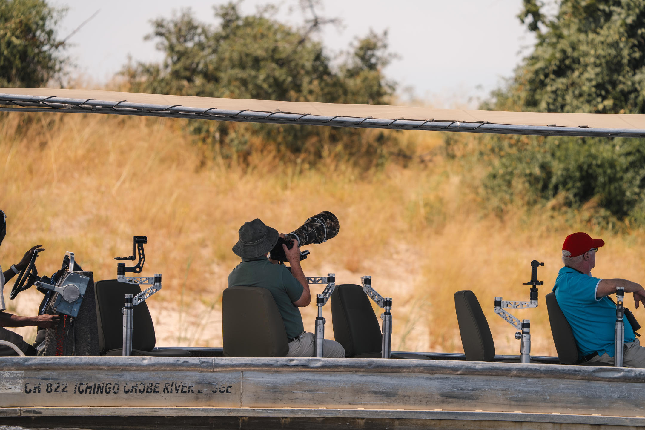 Uninterrupted access to wild animals. Absolute silence. Golden light. The Chobe River is an unforgettable photographic safari destination, and one of the wildlife photographers’ hotspots in Africa. To help you capture that perfect moment, our custom-designed photographic safari boats are available on request and cater for 6 clients in individual photographic seats. The boat contains custom-designed swivel chairs that give you greater stability and 360-degree views for a wider range of subject matter. Every seat is equipped with a mounting for resting SLR cameras of all types and you’ll get your own experienced safari guide who’ll help you find that perfect shot. Bring your own photographic equipment as we don’t supply this - the optimal lens to bring is an 80 - 400mm zoom. Because this is a water-based safari, you'll be able to take unique shots in a safe environment, being able to view the animals in the Chobe National Park surrounded by that magical golden light Africa is renowned for. Tea and coffee will be offered in the morning during the winter months and soft drinks, local beers and wines will be served in the afternoon. Light snacks are also served during your excursion, providing you with a photographic experience that's also about pure comfort. Departure times are early morning and late afternoon and the safari takes three hours. Please let us know at the time of booking your holiday if you’d like to use our customized photographic safari boat. Capture your stay with breathtaking photos of the unique African landscape and the wild animals that surround you.