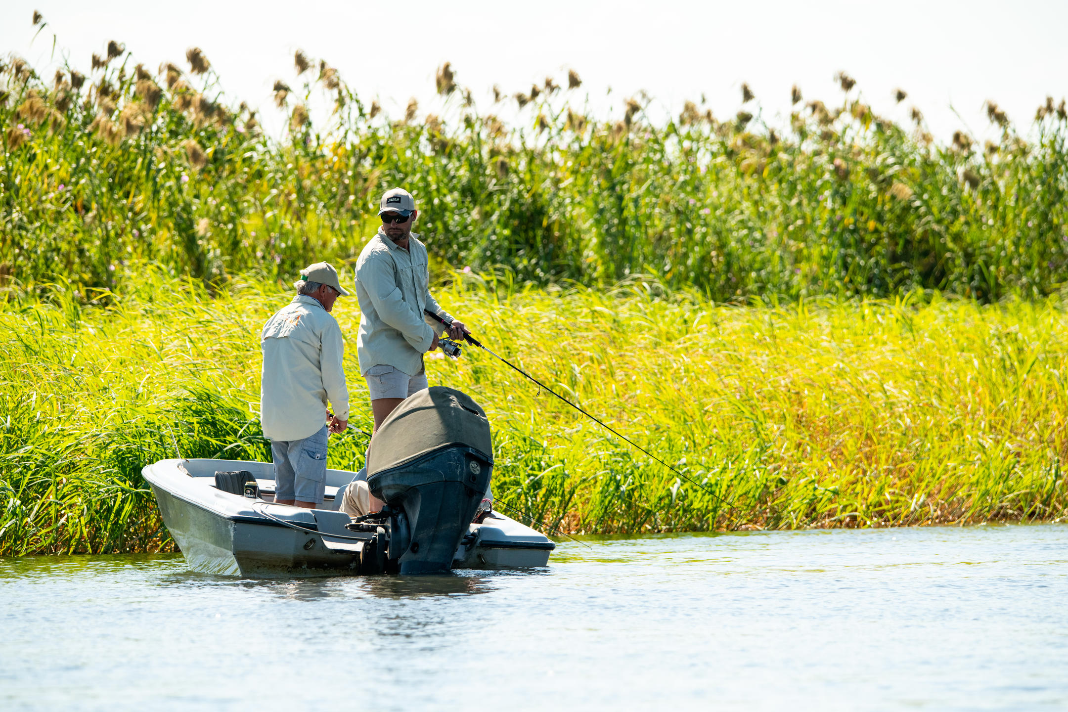 No trip to the Chobe is complete without trying your hand at a fishing safari where if you’re lucky, you may even catch a tiger fish. One of the greatest fighting fish in the world, the tiger fish is the most sought after prize of these waters and is known for its ferocious spirit. It's not all about tiger fish though. You may also hook one of the many bream species, African pike, tilapia, catfish or upper Zambezi yellowfish as you explore over 100 kms of the Chobe and Zambezi rivers, as well as the winding Kasai Channel and thrilling Chobe and Mambova rapids. We offer both conventional equipment as well as flyfishing equipment for our fishing safaris, because we know that the area is renowned worldwide for its flyfishing. We supply rods, flies, lures, lines, leaders and reels and all equipment is included in our rate. Because of our unique location, we offer excellent fishing safaris all year round – from the annual floods starting in March to the feeding frenzies in the winter months. Our highly knowledgeable guides, the tackle and bait we supply as well as well stocked cooler boxes make fishing in Africa an experience to remember. Land an eight pounder or more and earn bragging rights for years to come, as you enjoy a fishing trip that's second to none.