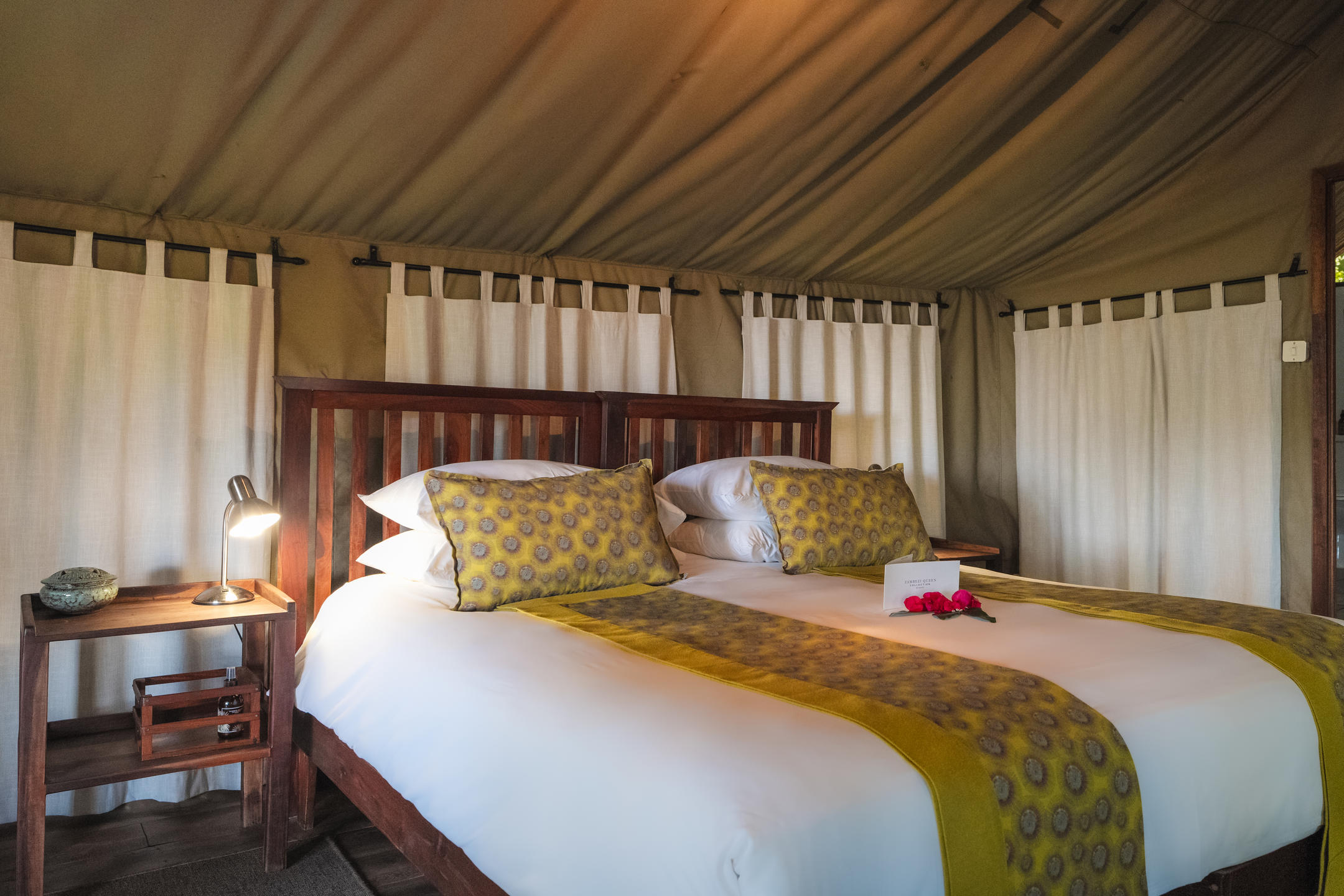 There is one family tent available, which is a Standard Tent with an adjoining smaller tent. Furnished with two single beds - convertible to king, this tent can be booked together with the adjacent Standard Tent: For peace of mind, your children will be right next to you, while enjoying the adventure of staying in their very own tent.