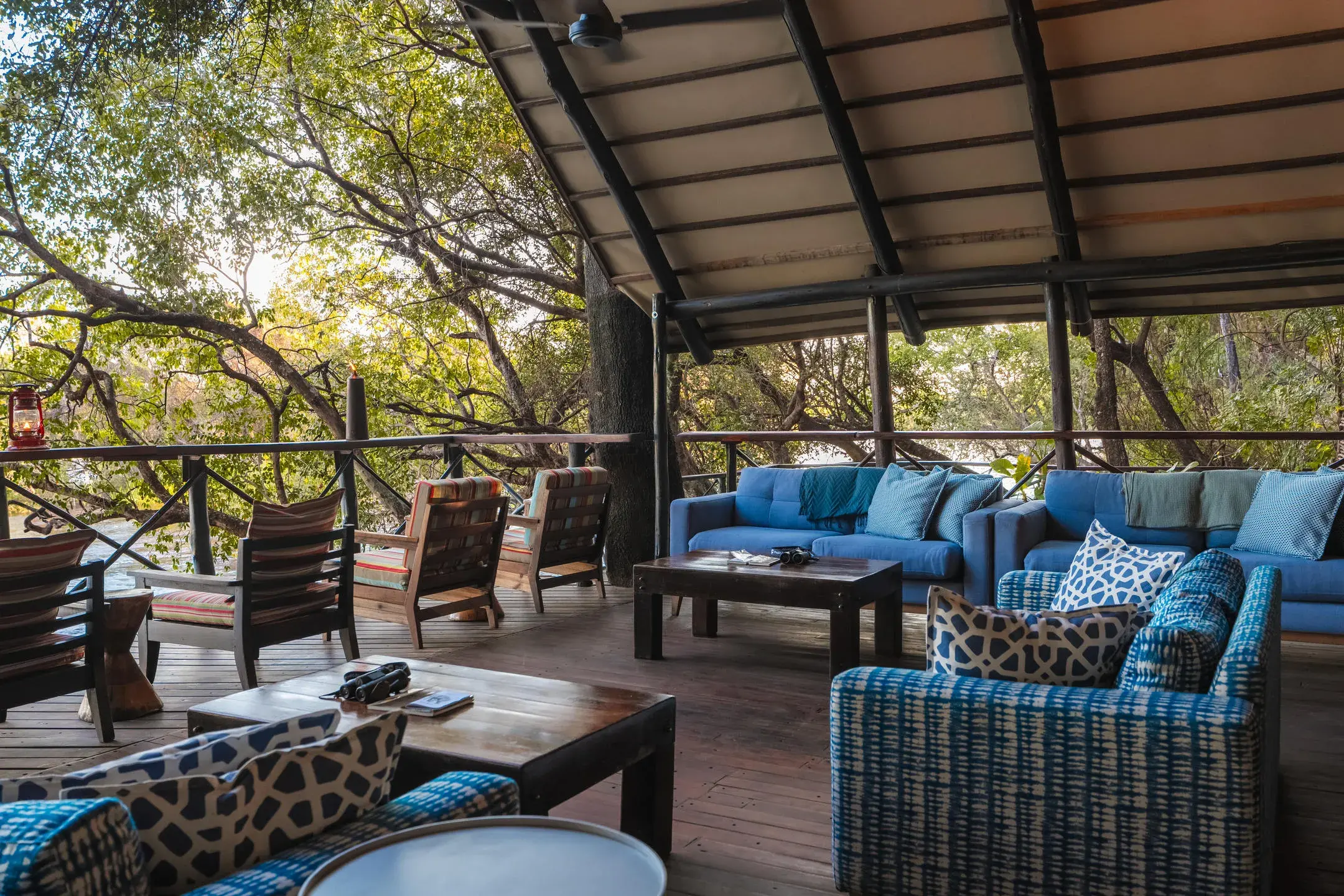 The large Meru safari tents at Ichingo Chobe River Lodge give you all the excitement of a safari adventure in Africa, coupled with the ultimate in comfort. Your large air-conditioned safari tent comes complete with a king-size bed, a dressing table, bedside lamps, chairs and an en-suite bathroom - everything you’d expect from a deluxe hotel. At the same time, because you're in a tent you won’t lose that feeling of being in the thick of the African bush, as you listen to the sounds of the Chobe River flowing past you and the call of fish eagles in the distance.