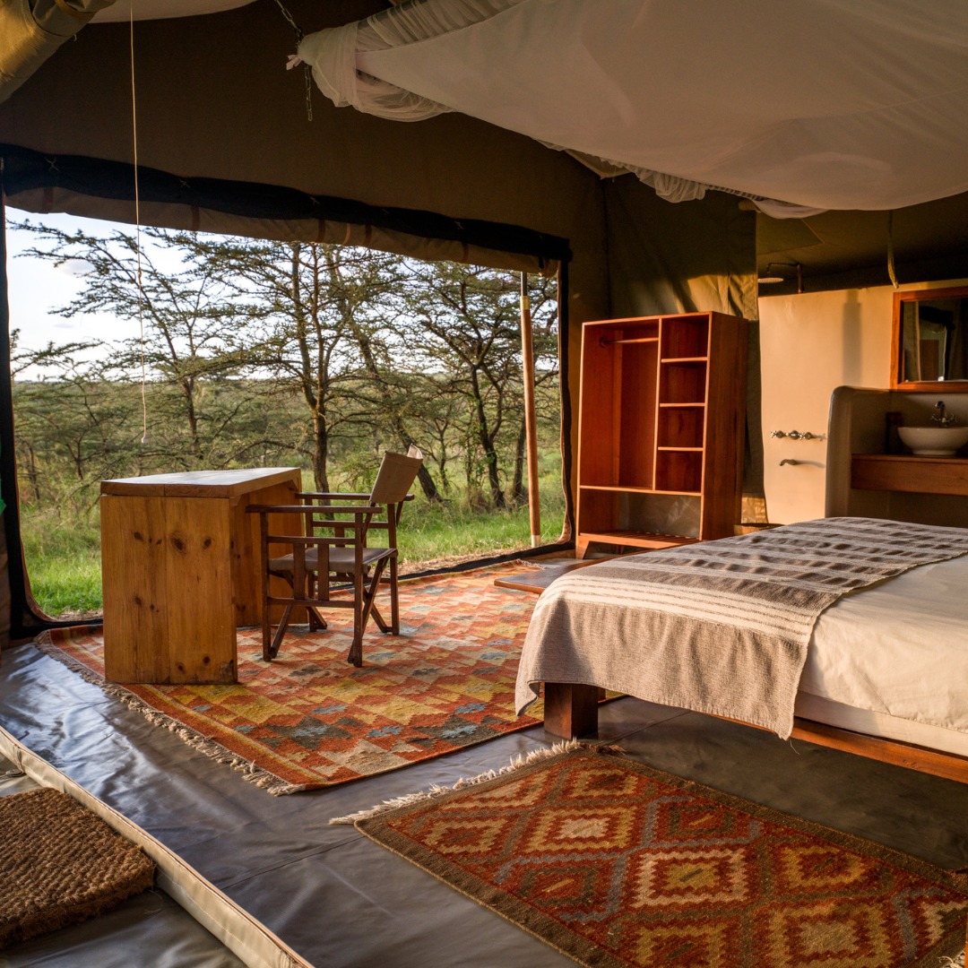 Three tents available as double, twin, or single. Decorated in classic safari style, they offer simple, comfortable accommodation for couples or solo travelers.