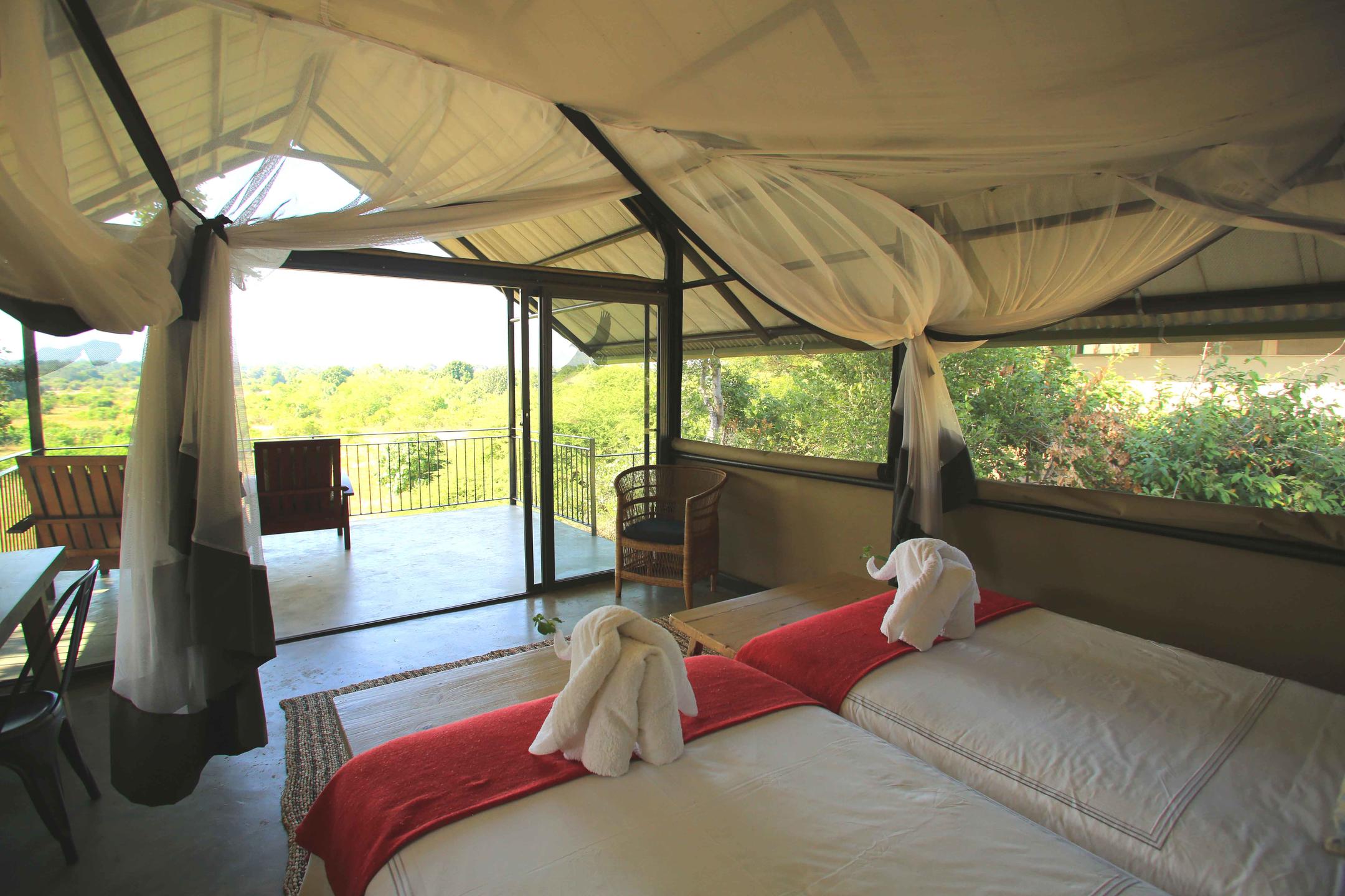 This camp consists of 7 comfortable raised tents built on the edge of the cliff, facing east, with a view of the rising sun above the magnificent Zambezi Valley floor. Each tent has been designed with an emphasis on privacy and is surrounded by insect repellent gauze, allowing the air to circulate and contributing to maximum coolness. Inside each tent are comfortable beds and an ensuite bathroom with a dressing area. In front, a verandah falls in line with the edge of the cliff giving a feeling of infinite space.