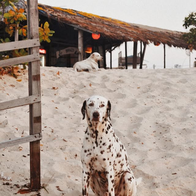 The lodges have gardens that change with the season, from exciting green grass to peaceful beige sand.