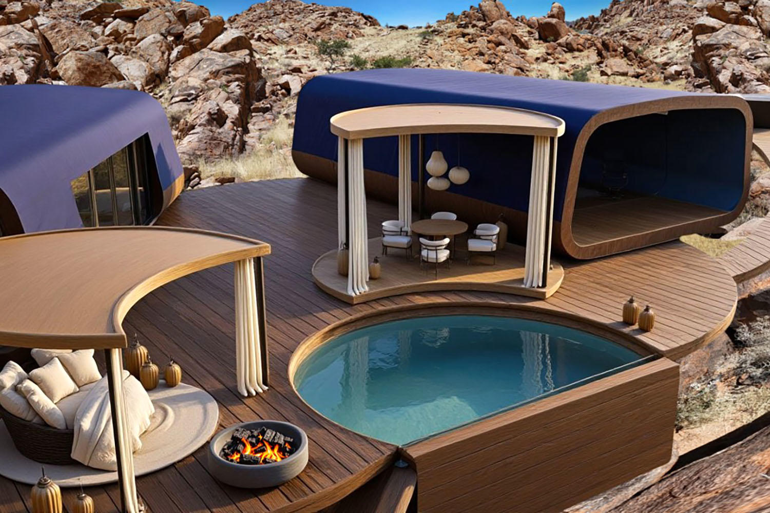 The Luna Namib Collection sits in the vast serenity alongside the Namib Rand. This high-end retreat offers a fully inclusive escape where nature’s grandeur meets soulful stillness. Surrounded by ancient camel thorn trees, rugged mountain and boulder outcrops, and the shifting sands of the Namib Sand Sea, Luna is located in a spiritually awakened space - a place of renewal, stillness, and sensory immersion. The sounds of wind, cicadas, and wildlife replace noise and distraction. Every stay at Luna is deeply personal, curated by a dedicated team to ensure that each moment feels effortless, restorative, and utterly unforgettable.