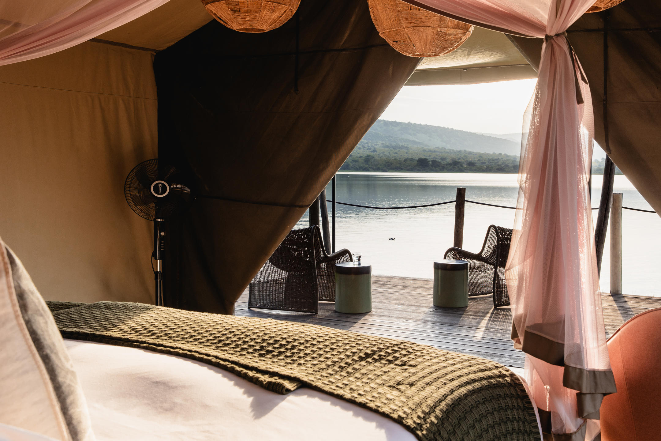Six spacious and airy tented guest rooms offer uninterrupted views over Lake Rwanyakazinga. The architecture and interiors pay homage to traditional Rwandan culture.