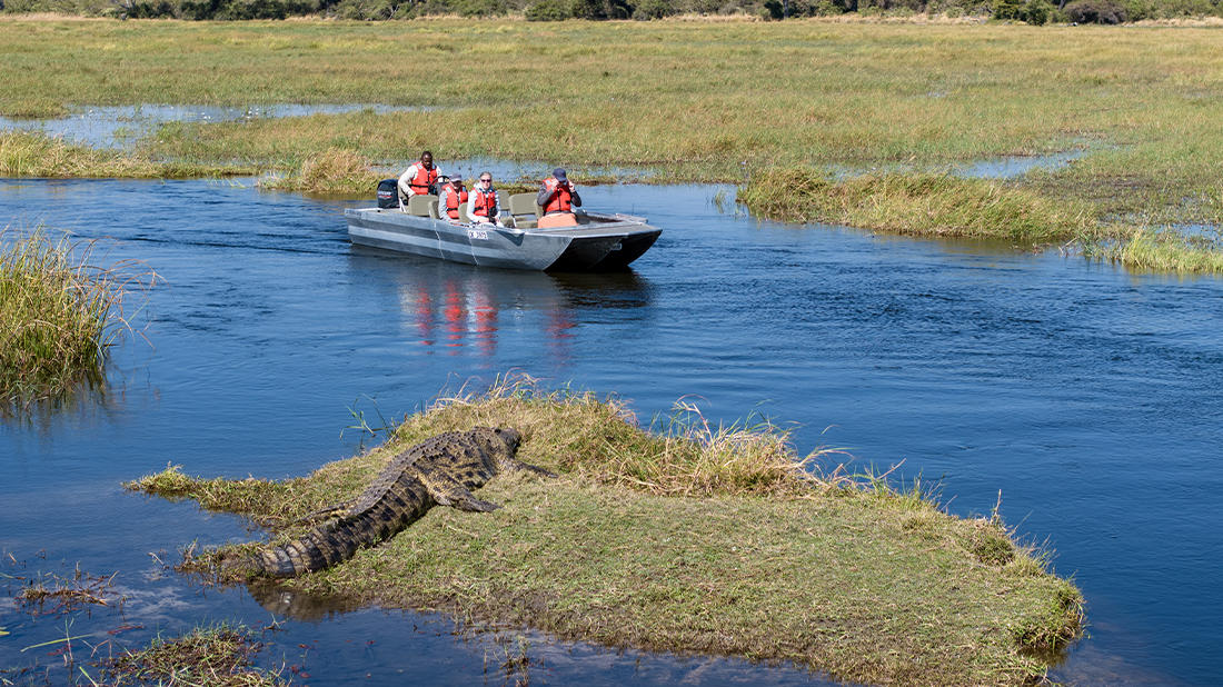 Explore the waterways, viewing the wildlife at eye level on a boat safari gliding through the lily-filled channels.