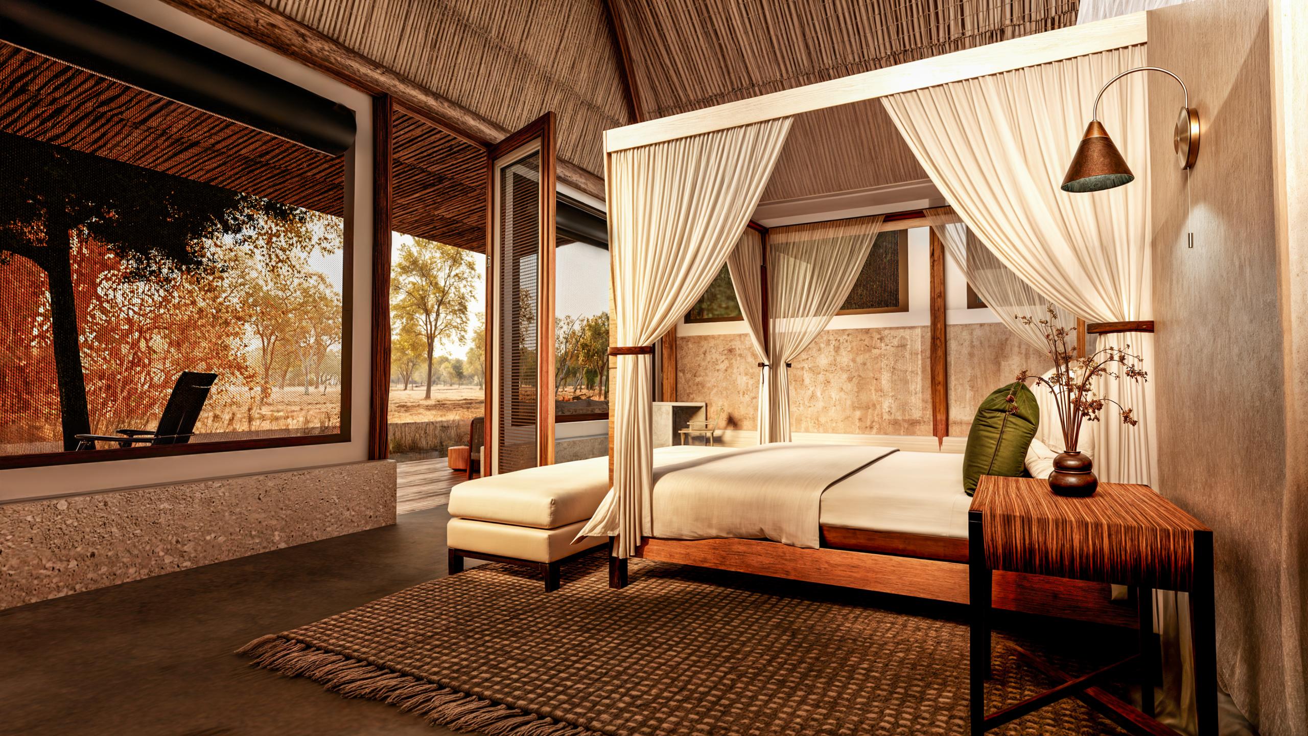(4 ROOMS) Four chalets built from a combination of canvas, screed and thatch (including king and twin configuration flexibility) can accommodate up to 8 guests.