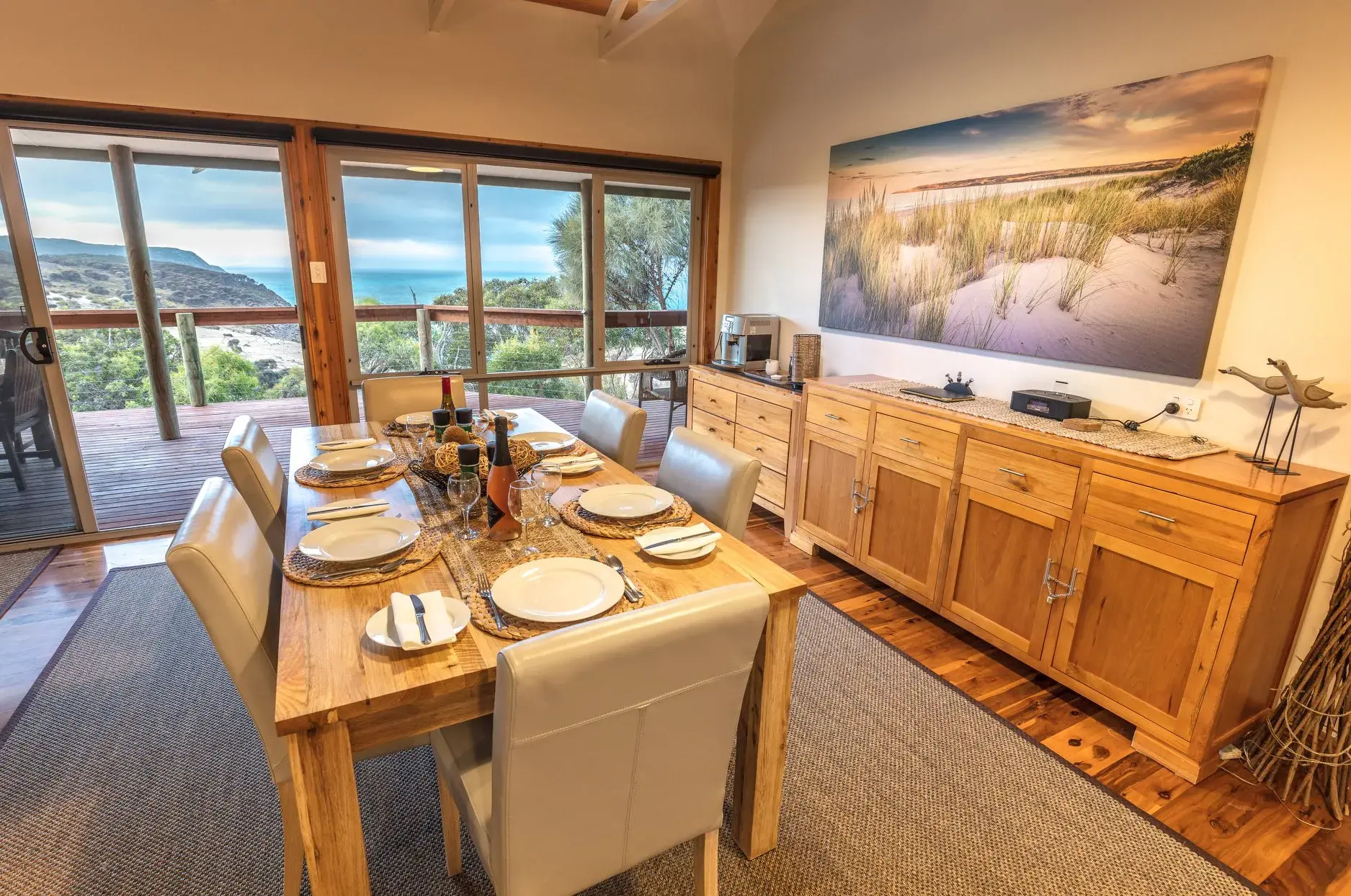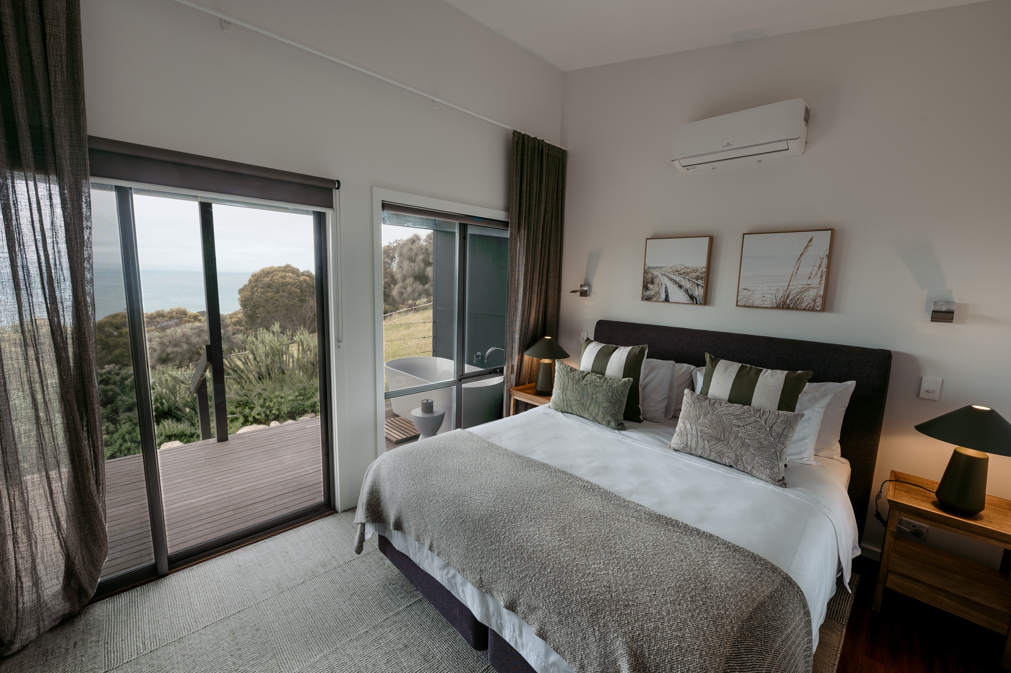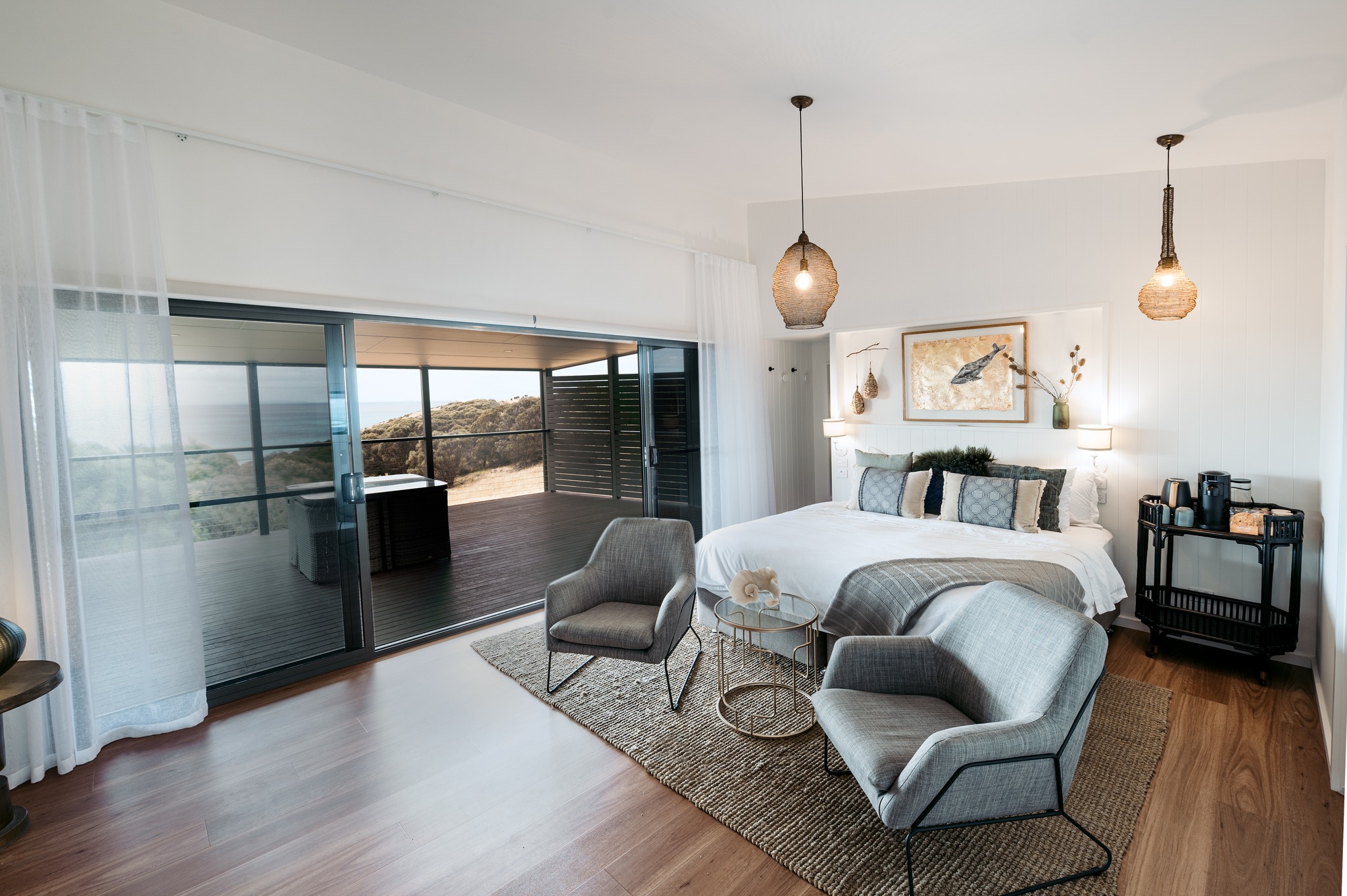 No matter where you rest your head at Sea Dragon, each accommodation has stunning ocean views over Pink Bay and an outdoor deck to enjoy the surroundings. Styling varies between each accommodation, with each encapsulating the essence of either land or sea.