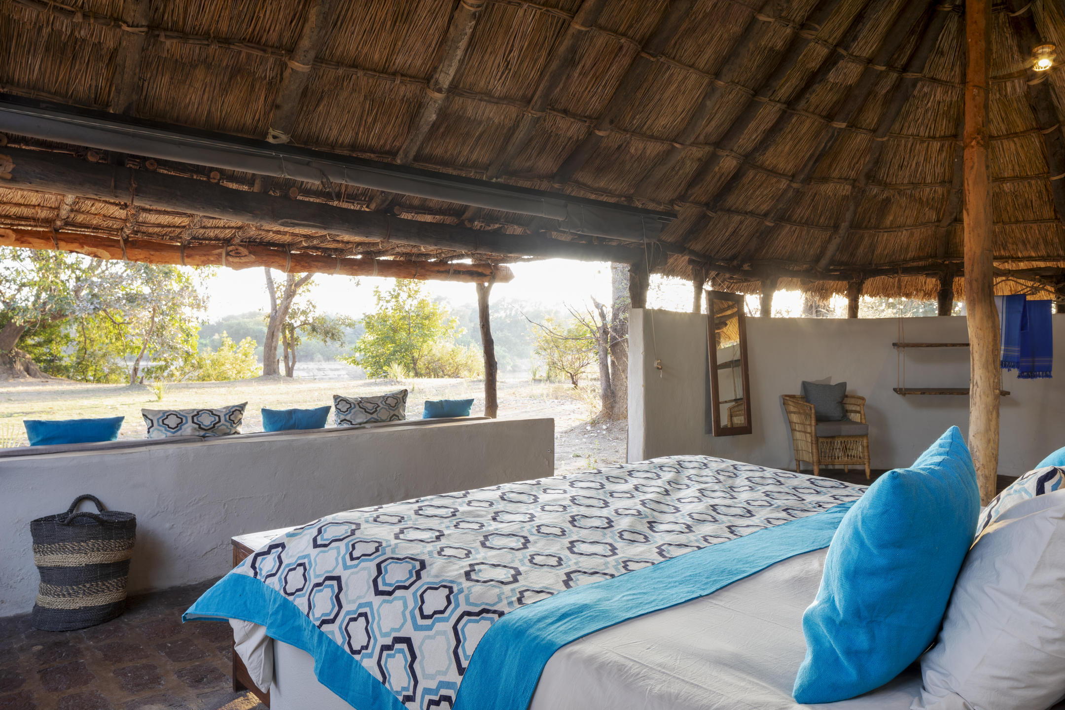 (1 ROOM) Single king bed chalet. En-suite facilities with shower, basin and toilet. Running water with hot water available at all times. Verandah looking out over the river. Brick base with natural thatch walls and roof made from natural materials and local skills.