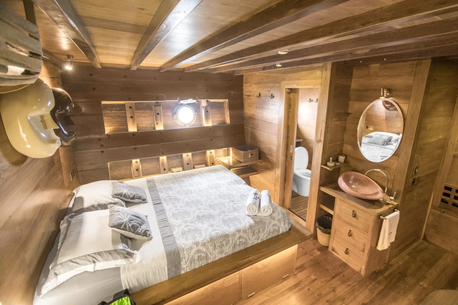 Type: Phinisi – traditional wooden 2 mast top sail schooner