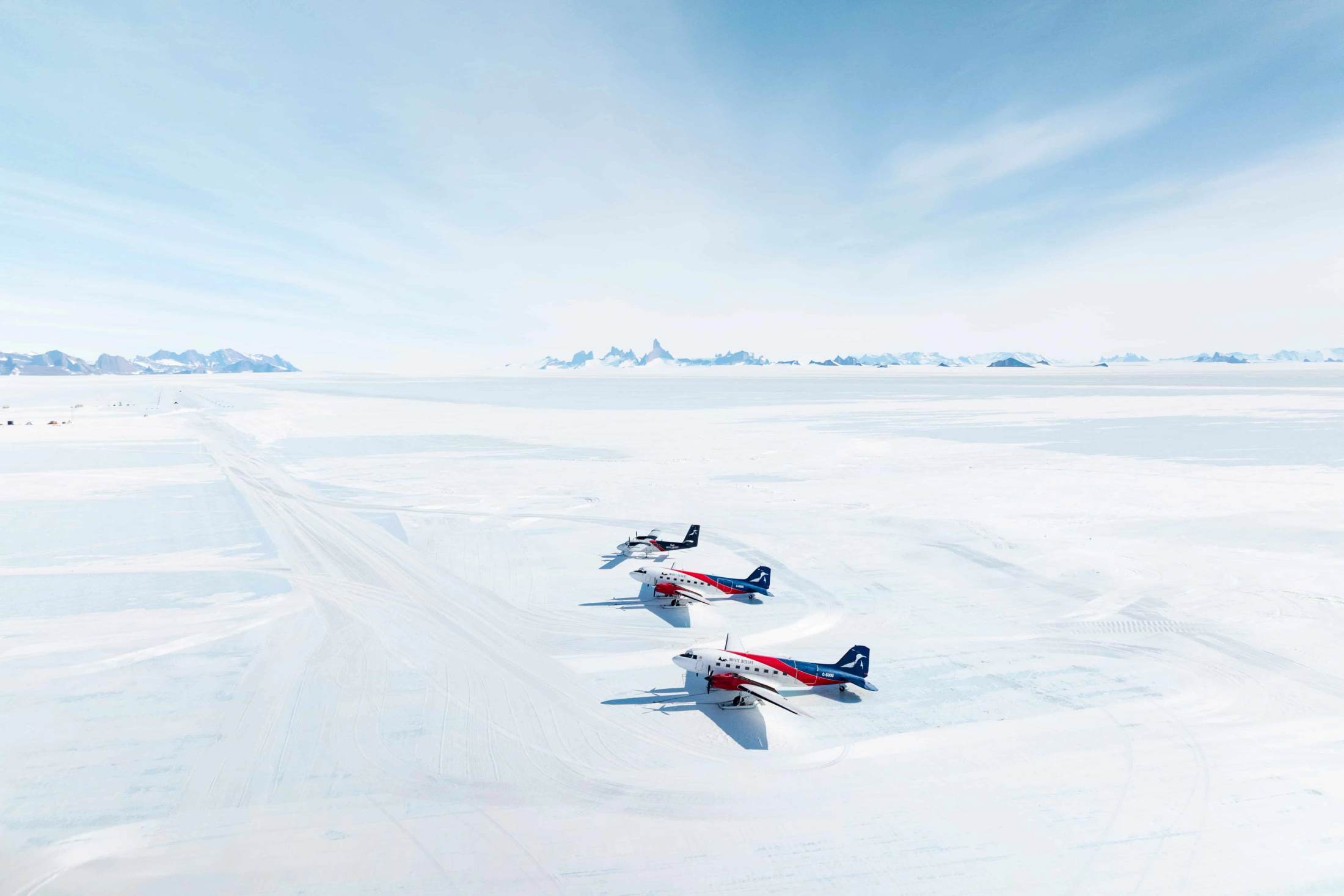 From Cape Town, a 5.5-hour flight carries you across oceans and sea ice into 24 hours of continuous daylight. Land on a blue-ice runway and toast your arrival with cocktails chilled by 10,000-year-old Antarctic ice.